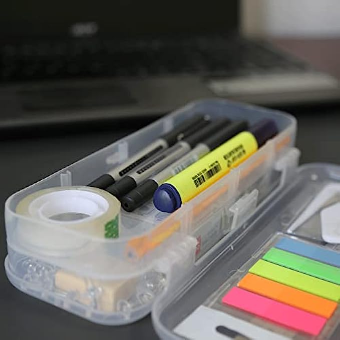 • ALL IN ONE OFFICE KIT: you will find all the common office supplies from this little box, includs Binder Clips*12, Sharpener*1, Paper Clip*80, Stapler*1, Staples*1000, Rubber Band*12, Eraser*1, Clear Push Pin*18, Letter Opener*1, Page Marker*5, Steel Ruler*1, Pencil*2, Highlighter*1, Black Pens*3, Steel Scissor*1, Clear Tape*1,Clear Pencil Box* 1