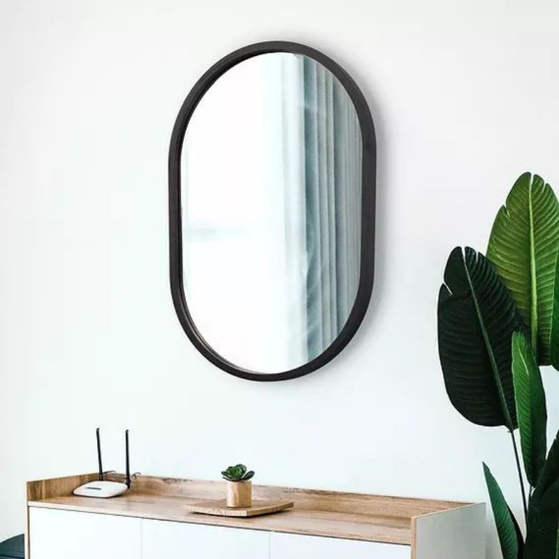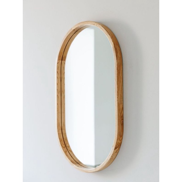 KAYU Aesthetic capsul Mirror Oval Wood Frame Glass Wall Sink Bathroom Aesthetic Mirror