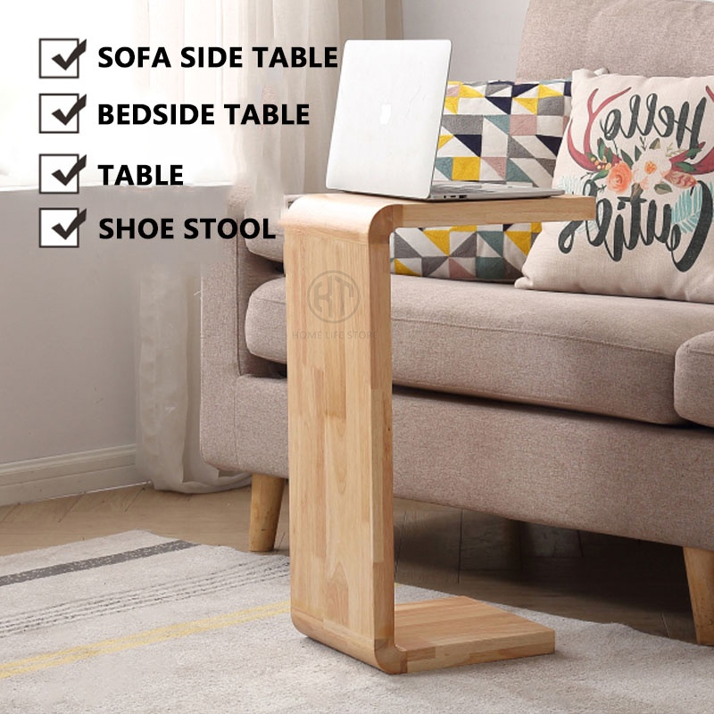 KT-zone Side Table Solid Wood U-shaped Bedside Table C- Shaped Tatami Storage Rack Small-sized Corner Creative Bedside Sofa Side Living Room Tea Table