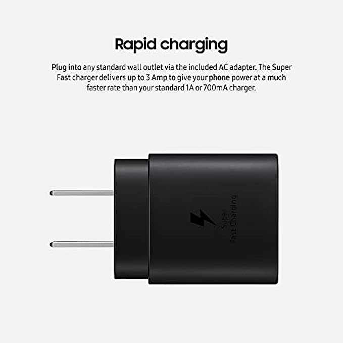 Rapid charging - plug into any standard wall outlet via the include AC adapter. The super fast charger delivers up to 3 amp to give your phone power at a much faster rate than your standard 1a or 700mA charger.