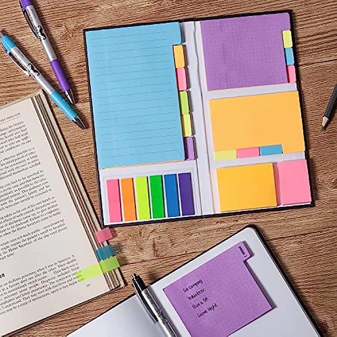 • 【Complete Set】410pcs in total in one sticky note, include ruled notes, dotted notes, blank notes, index tab, in various colors.